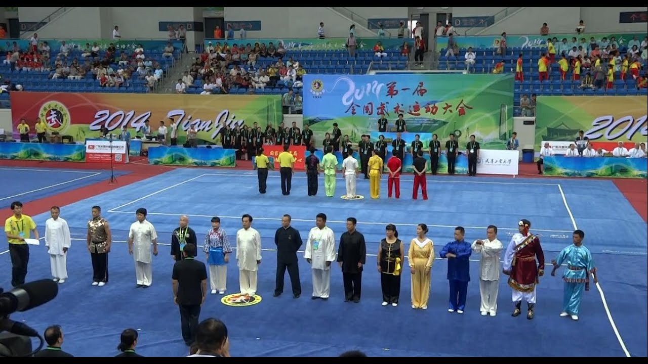 2014-8-8 1st China National Wushu Games 第一届全国武术运动大会, Tianjin Polytechnic University Gymnasium, China. 08:50 Competition Officials march in and introduction.
