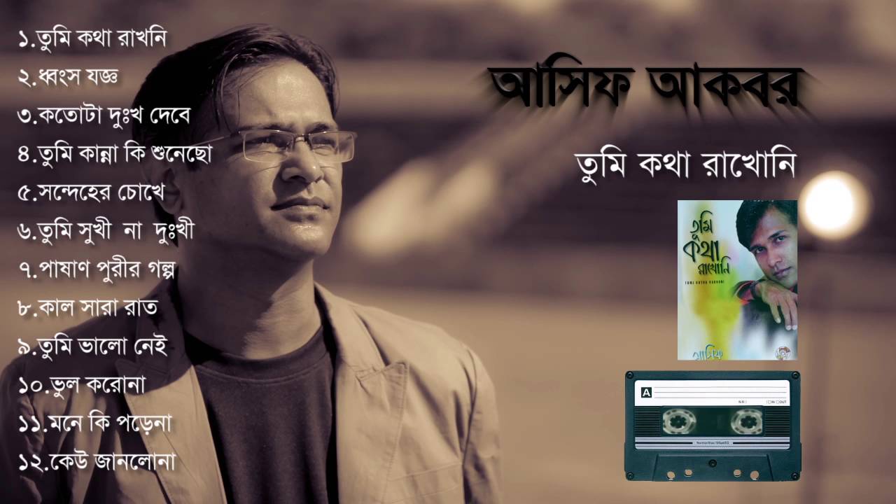 --TUMI KOTHA RAKHONI-- -3rd Solo Album–(2002)- 01. Tumi Kotha Rakhoni……….. Lyric- Pradip Saha Tune- Rajesh Ghosh 02. Dhongso Joggo………… Lyric- Pradip Saha Tune- Rajesh Ghosh 03. Kotota Dukkho Debe………. Lyric- Pradip Saha Tune- Rajesh Ghosh 04. Tumi Kanna ki Shunecho…….. Lyric– Shofiq Tuhin Tune- Rajesh Ghosh 05. Shondeher Chokhe………… Lyric- Nurul Islam Tune- M. H. Tutul 06. Tumi Shukhi Na Dukhi………… Lyric- Pradip Saha Tune- Rajesh Ghosh 07. Pashan Purir Galpo………… Lyric & Tune- Pritom Ahmed 08. Kal Sara Rat………….. Lyric- Pradip Saha Tune- Rajesh Ghosh 09. Tumi Bhalo Nei………….. Lyric- Pradip Saha Tune– Azmir Babu 10. Bhul Korona…………… Lyric & Tune - Rajesh Ghosh 11. Moneki Proena………….. Lyric- Pradip Saha Tune- Rajesh Ghosh 12. Keu Janlona………….. Lyric- Sokal Tune- Bashu Asif Akbar || Website Link- http://www.asifakbar.com Asif Akbar || Fan Page- https://www.facebook.com/asif.akbar.bd Asif Akbar || Music World- http://www.reverbnation.com/asifakbar Asif Akbar || Twitter Link- http://www.twitter.com/asif_akbar_bd