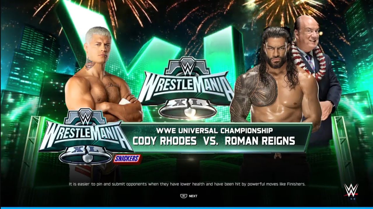 Cody Rhodes vs Roman Reigns. WrestleMania 40. WWE 2K25