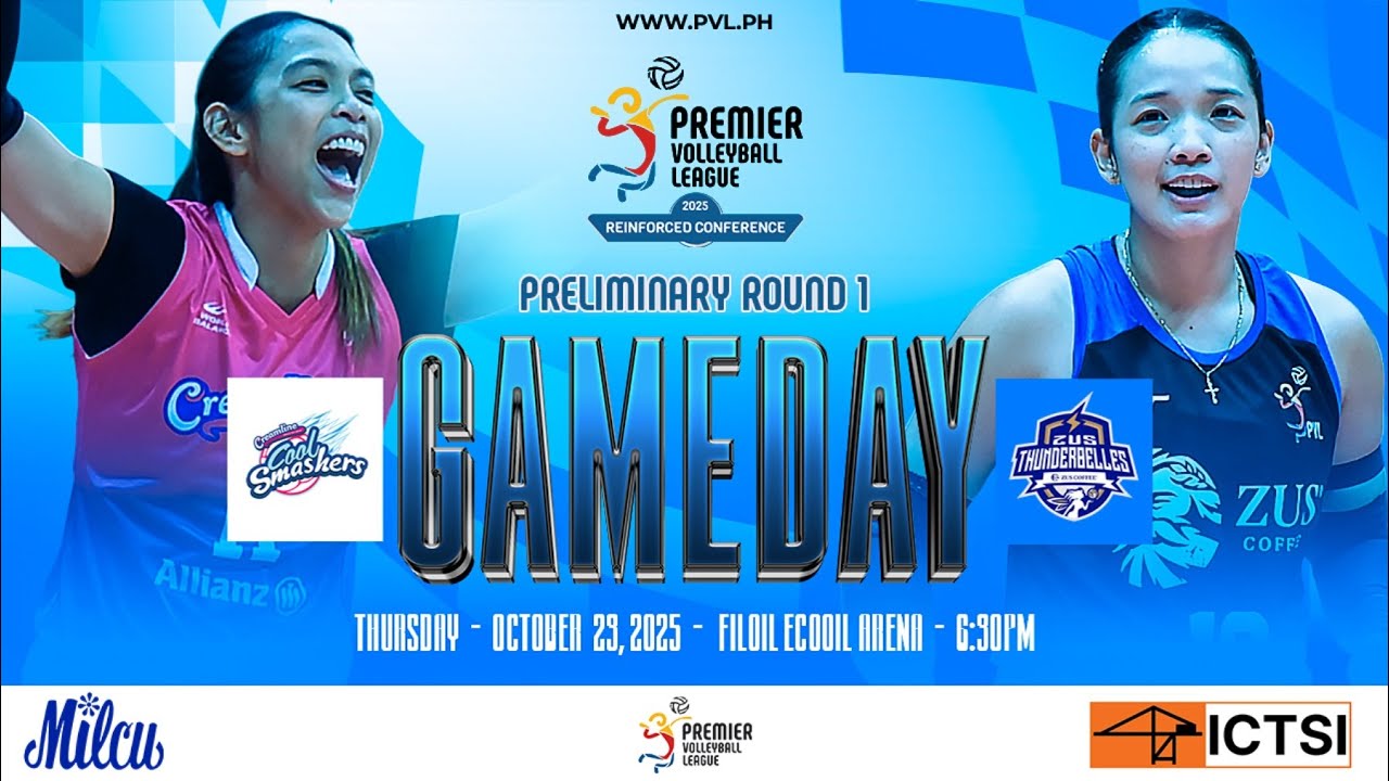 Watch the full match replay of the 2025 Premier Volleyball League Reinforced Conference Preliminaries (Pool B) Match 22 between the Creamline Cool Smashers and the ZUS Coffee Thunderbelles. -- 6:30 PM | October 23, 2025 -- Follow us on: Facebook: https://www.facebook.com/premiervolleyballleague Instagram: https://www.instagram.com/pvlph Threads: https://www.threads.net/@pvlph TikTok: https://www.tiktok.com/@pvlph X (Formerly Twitter): https://x.com/pvlph -- Visit our official website: https://pvl.ph -- #PVL | #TheHeartOfVolleyball