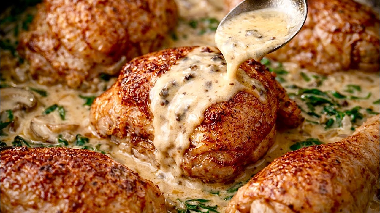 Creamy Mushroom Chicken - Ready in 30 minutes This creamy chicken is tender, juicy and covered in the most delicious homemade cream sauce. It’s quick, budget-friendly and perfect for busy weeknights. If you love easy chicken recipes, one-pan meals and comforting dinners, this recipe is for you. Serve it with rice, mashed potatoes, pasta or vegetables for a complete meal. If you enjoy creamy chicken recipes, mushroom recipes, or spinach recipes, you’ll definitely want to try this one! 🔔 Don’t forget to like, comment, and subscribe for more delicious homemade recipes every week. #CreamyChicken #MushroomChicken #ComfortFood #DinnerIdea #WeeknightDinner #familydinner _______________ Ingredients: Chicken: 8 Pieces of Chicken Olive Oil 1 Tsp Salt 1 Tsp Paprika 1 Tsp Garlic Powder 1 Tsp Onion Powder 1 Tsp Chicken Spice 2 Tsp Cayenne Pepper 1/4 Tsp Salt 1 Onion Sliced Mushrooms Spinach 250ml Fresh Cream 1 Chicken Stock Cube 1 Tsp Cornflour Paste (Add Corn flour and a bit of water) 200ml Hot Water 1 Tsp Garlic Powder 1 Tsp Onion Powder 1/4 Tsp Salt 1 Tsp Paprika _______________ Find me on other social media platforms Instagram Food Page: / nomhlecooks Personal instagram: / _nomhle_s Tik Tok: / nomhlecooks Facebook: / nomhlecooks