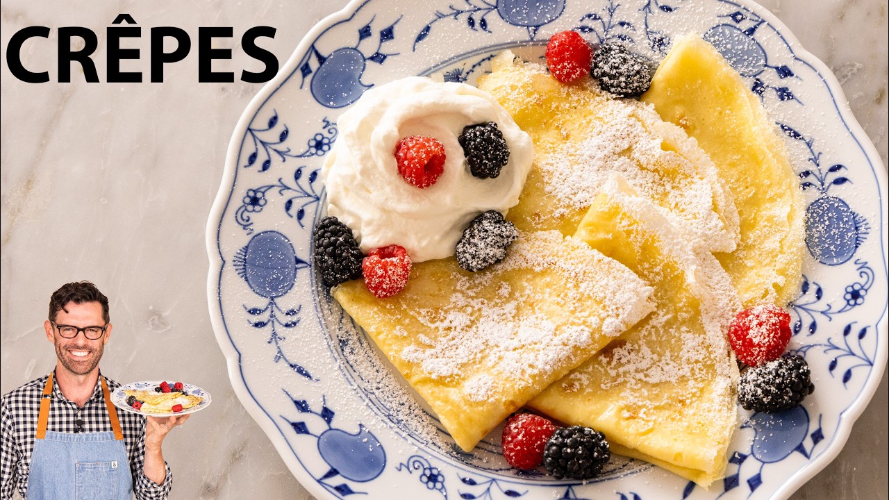 My homemade Crepe recipe yields a stack of delicate, thin pancakes perfect for stuffing with either sweet or savory fillings. With only 7 ingredients (including water), you can easily make classic French crepes at home! A delicate crepe is a French classic that you can easily make at home. With this easy crepe recipe, recreating the famed Parisian cafe food is well within reach for any curious cook. All you need is a handful of basic ingredients, a blender or whisk, and a skillet! RECIPE: https://preppykitchen.com/crepe-recipe/ ORDER MY NEW BOOK! Amazon: https://www.amazon.com/exec/obidos/AS... Barnes and Noble: https://www.barnesandnoble.com/w/prep... Bookshop: https://bookshop.org/p/books/preppy-k... Booksamillion: https://www.booksamillion.com/p/97816... Amazon CA: https://a.co/d/fuve5Xj
