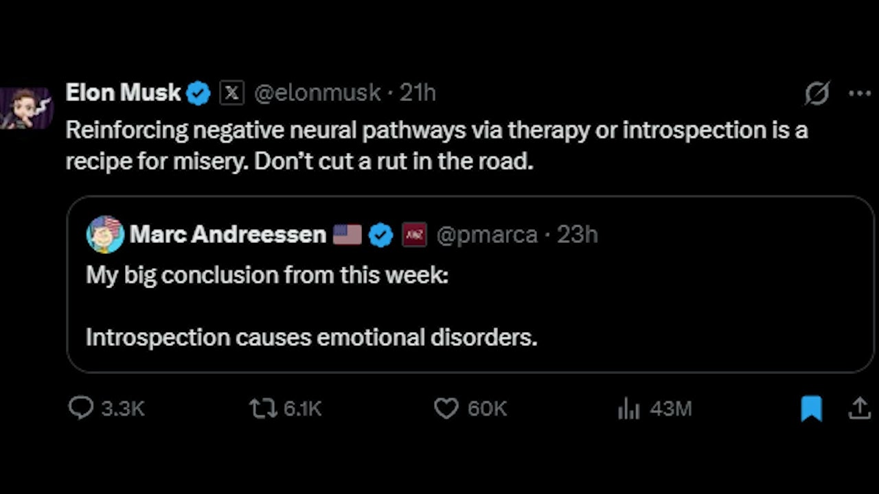It turns out, for trauma and depression, therapy is often a very bad decision as it can reinforce neuropathways and cause rumination instead of breaking the cycle. Thank you for joining me on this educational breakdown as we take a closer glance looking at a tweet from Elon Musk.