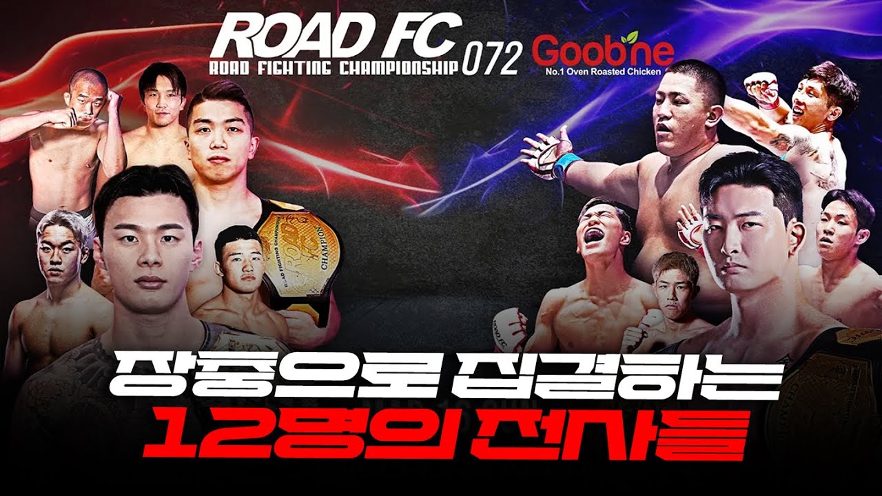 ‼️역대급 초호화 대진‼️굽네 ROAD FC 072 D-5🔥 3월 16일 장충체육관에서 열리는 굽네 ROAD FC 072 전석 매진! 아래 링크에서 생중계로 확인하세요😎 ✅TV 생중계 SPOTV G&H, SPOTV2 ✅온라인 생중계 보러 가기 👇카카오TV, 다음스포츠 생중계 링크 https://issue.daum.net/sports/roadfc 👇SOOP (구 아프리카TV) 생중계 링크 https://play.sooplive.co.kr/roadfc999 [굽네 ROAD FC 072 2부 / 3월 16일 오후 4시 서울 장충체육관] [헤비급 타이틀전 김태인 VS 세키노 타이세이] [미들급 통합 타이틀전 황인수 VS 임동환] [라이트급 박시원 VS 난딘에르덴 (김인성)] [플라이급 타이틀전 이정현 VS 고동혁] [-66kg 계약체중 김현우 VS 쿠로이 카이세이] [-68kg 계약체중 박해진 VS 하라구치 신] [굽네 ROAD FC 072 1부 / 3월 16일 오후 2시 서울 장충체육관] [웰터급 윤태영 VS 뷰렌조릭 바트문크] [플라이급 이길수 VS 조준건] [무제한급 킥복싱 매치 이호재 VS 아즈자르갈] [플라이급 이신우 VS 편예준] [-67kg 계약체중 박현빈 VS 이선주] [라이트급 장재욱 VS 장현진] [굽네 ROAD FC 073 / 6월 28일 서울 장충체육관] [윤형빈 VS 밴쯔]
