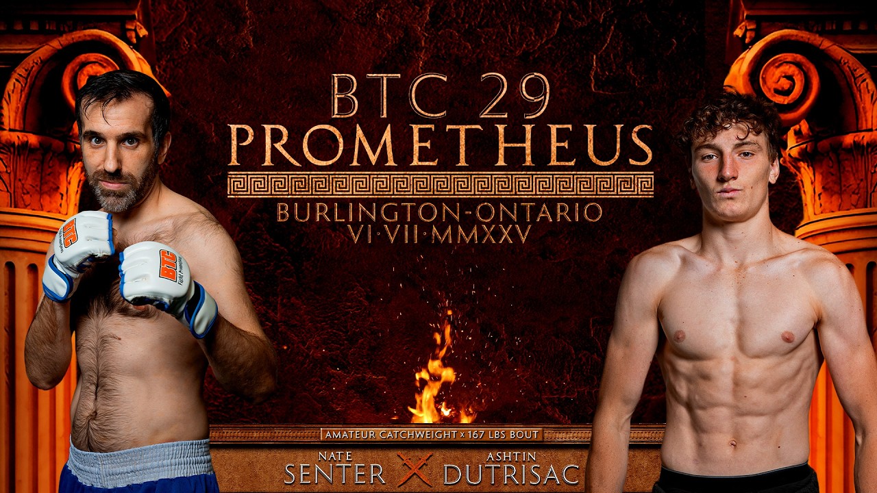 BTC 29: Prometheus Nate Senter vs. Ashtin Dutrasic Venue: Central Arena City: Burlington, Ontario Date: Sat June 7th, 2025 Website: https://btcfight.ca Instagram: https://instagram.com/btcfight FaceBook: https://facebook.com/btcfight TikTok: https://tiktok.com/@btcfight Twitter: https://twitter.com/btcfight