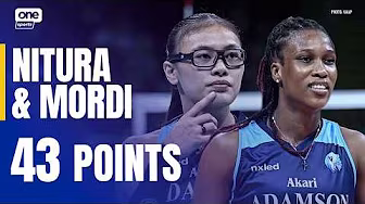 NEXT-LEVEL FLIGHT 🐦 Despite falling short of the win, Shaina Nitura and Frances Mordi tally a combined 43 points for the Adamson Lady Falcons in their five-set battle with the DLSU Lady Spikers in Round 1 of the UAAP Season 88 women’s volleyball tournament. #UAAPSeason88 #StrengthInMotionHopeInAction #LegendsStartHere Subscribe to One Sports channel! http://bit.ly/OneSportsPHL Website: https://www.onesports.ph/ Facebook: / onesportsphl X: / onesportsphl Instagram: / onesportsphl Tiktok: / onesportsphl Reddit: / onesportsphl
