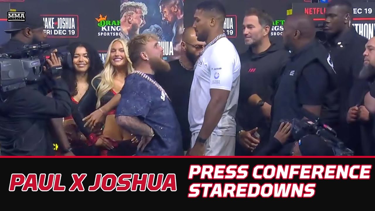 Watch #jakepaul, #anthonyjoshua, and the rest of the competitors for Friday's #netflix boxing event go face-to-face following the pre-fight press conference in Miami. π΅ Join this channel to get access to perks: https://www.youtube.com/channel/UC4f1JueVgo5t9HSmobCRPug/join π΅ Subscribe to MMA Fighting on YouTube: http://goo.gl/dYpsgH π΅ Subscribe to MMA Fighting feed on iTunes: https://podcasts.apple.com/us/podcast/mma-fighting/id320642139 π΄ Check out our full video catalog: http://goo.gl/u8VvLi π΄ Visit our playlists: http://goo.gl/eFhsvM π Like on Facebook: https://mma-fighting.visitlink.me/jXx747 π Follow on X: https://mma-fighting.visitlink.me/oHZAG3 π Follow on Instagram: https://mma-fighting.visitlink.me/eZP5ff π Follow on TikTok: https://mma-fighting.visitlink.me/DZzQ3W π Follow on Threads: https://mma-fighting.visitlink.me/pJJ2xj π Follow on Bluesky: https://mma-fighting.visitlink.me/GIxe-N π Subscribe on Twitch: https://mma-fighting.visitlink.me/nSjCJV Read More: http://www.mmafighting.com MMA Fighting is your home for exclusive interviews, live shows, and more for one of the world's fastest-growing sports.