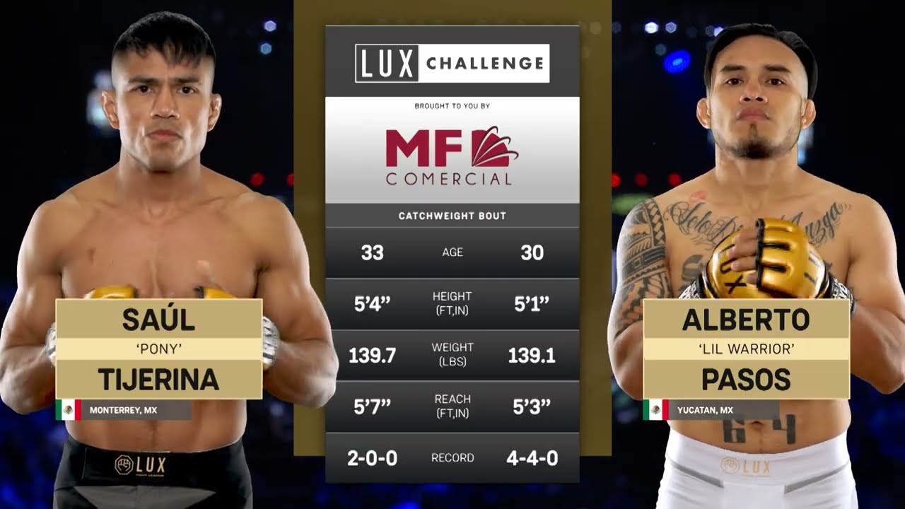 El Showcenter de Monterrey, Nuevo León, fue testigo de una auténtica guerra dentro de la jaula en LUX Fight League 050. Saúl “Pony” Tijerina y Alberto “Lil Warrior” Pasos protagonizaron un combate de alto voltaje que se extendió a lo largo de tres rounds de pura intensidad, corazón y determinación. Golpeo constante, intercambios cerrados y una batalla de voluntades marcaron cada asalto. Con temple, resistencia y una presión incansable, Tijerina logró imponer su ritmo y cerrar una actuación memorable que lo llevó a la victoria por decisión unánime de los jueces, consolidándose ante su gente en una noche que quedará grabada en la historia de LUX. Una pelea que honra el espíritu del MMA: coraje, técnica y guerra hasta el último segundo. --------------------------------------------------------------------------------------------------------------------------- 👉Únete a la comunidad de Lux Fight League: Vive la emoción de la MMA con combates poderosos, análisis profundos y contenido exclusivo: https://luxfightleague.com/ ¡Explora nuestros eventos! ➡️https://luxfightleague.com/eventos/ 📲Mantente Conectado para Más: 📲 Síguenos en las redes sociales 👇 📲 Instagram: https://www.instagram.com/luxfightleague 📲 Facebook: https://www.facebook.com/luxfightleague 📲 Twitter: https://www.twitter.com/luxfightleague 📲 TikTok: https://www.tiktok.com/@luxfightleague 💻 Official Website: https://www.luxfightleague.com