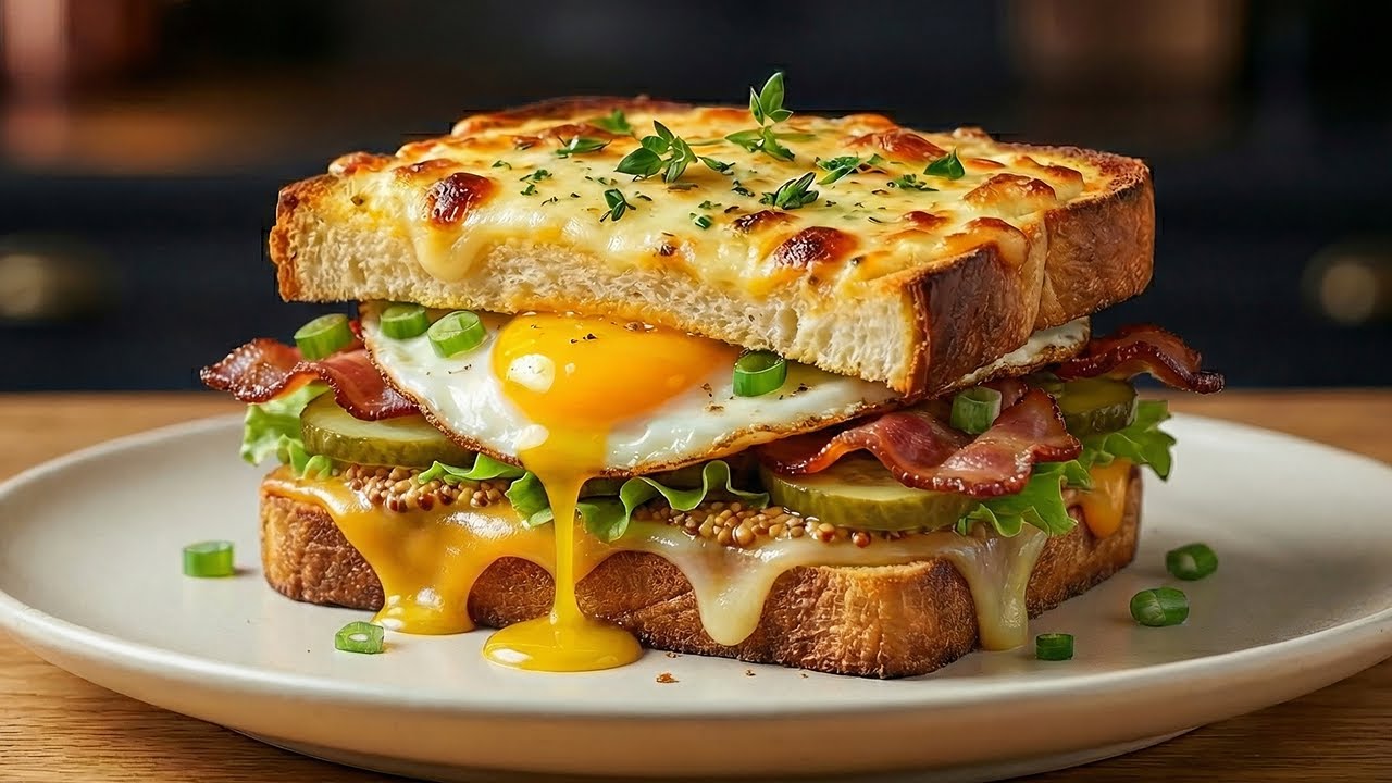 This Toast Recipe Has Gone Viral! Everyone Is Trying It and Loving It! Youโll want to make this simple toast sandwich for breakfast every single day! Crispy toast soaked in a savory egg mixture, filled with golden bacon, melted mozzarella and cheddar cheese, fresh green onions, crunchy pickled cucumber, a crisp lettuce leaf, and a touch of mustard for extra flavor โ all ready in just 5 minutes in the pan. Perfect for a quick breakfast, brunch, or a hot light dinner, and great even for beginners. In this video, Iโll show you step by step how to make a delicious egg toast sandwich thatโs crispy on the outside, juicy on the inside, and incredibly aromatic. Ingredients: eggs, bacon, toast bread, green onions, pickled cucumber, mozzarella cheese, cheddar cheese, mustard, lettuce leaf. Bon Appetit!๐ ๐ Thanks so much for your feedback and likes!