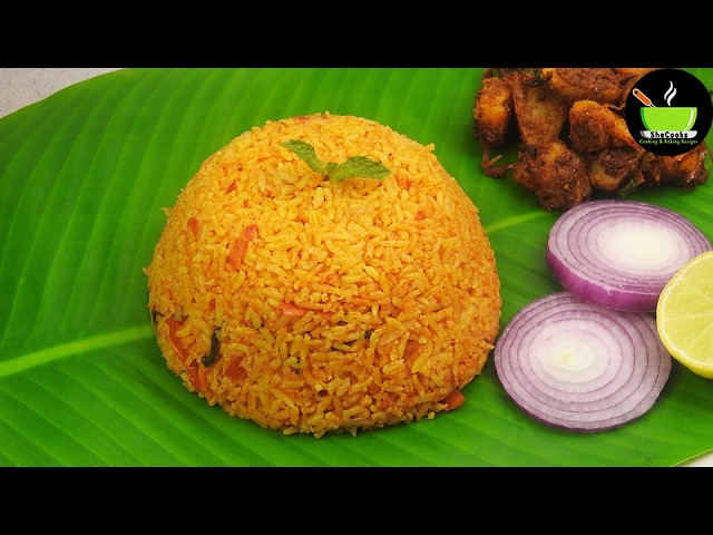 Tomato Rice Recipe | Thakkali Sadam Recipe | Office Lunch Box Recipe | Guest Lunch Recipe | Lunch Like And Follow Us On: Instagram – / shecooks_official Facebook – / shecooksnbakes WhatsApp https://www.whatsapp.com/channel/0029... Pinterest – / shecooks_official YouTube - / shecooks Twitter – / shecooksnbakes Ingredients: 2 Cups Seeraga Samba Rice 2 tbsp Ghee 2 Tbsp Oil 4 Cloves 1 inch Cinnamon 4 Green Cardamom 2 Bay Leaves 2 Onions 5 Tomatoes Handful of Mint Leaves Handful of Coriander Leaves 2 Tbsp Ginger Garlic Paste 1/4 Tsp Turmeric Powder 1 Tbsp Kashmiri Chili Powder 1/2 Tbsp Coriander Powder 1 Tsp Garam Masala Powder 3 Tbsp Curd/Yogurt Salt #tomatorice #thakkalisadamrecipe #tomatobiryanirecipe #lunchboxrecipe